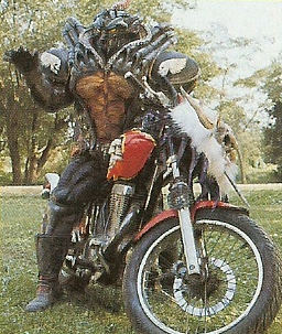 MEGARANGER VS CARRANGER Helmedor A Space Biker who wanted to build a motorcycle highway though the Milky Way for hell-raising space bikers much like him to wreak havoc. He grew huge one time and took down the Galaxy Mega. He then returned to human size. He teamed up with Shibolena and was eventually taken under her control via a magic kiss of hers when he resisted. When he got his hands on the space fairy Picot, he first wished for a huge weapon to blow up a planet. He was finally killed by RV Robo, Mega Voyager and Mega Winger. |