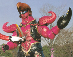 EPISODE 05 Bucter The Weevil-like Bucter is an expert at stealing and collecting weapons. He tried to make the Great Darkness Sword by combining 555 weapons, including the Machine Blades that he stole from the Gingaman's ancestors 3,000 years ago. The Gingaman took them back and he was killed by the GingaLeon's flaming breath. Revived by Gregory and killed again by the Megarangers in 'Gingman vs. Megaranger'. |