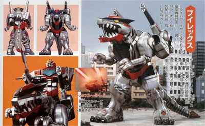 The V-Rex is the Inter-City Police forces strongest mecha. When it was launched through the time gate, it was accidentally lost in time. After recovering the V-Commander the V-Rex's control device and becoming TimeFire, Naoto Takizawa gained control of the V-Rex shortly afterwards. Eric uses the V-Rex as part of the City Guardians, and helps the Rangers when they need it. The V-Rex can fire lasers from shoulder mounted cannons. It can also transform into V-Rex Robo, in which it can fire missiles, and deliver the max blizzard attack. TimeRobo Alpha can ride behind V-Rex called the Riding Time Robo Alpha. In Timerangers VS GoGoFive, Victory Robo rode on the V-Rex. |
