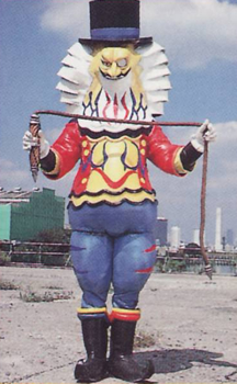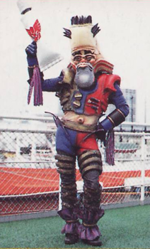 EPISODE 39 CC Patchoone Bowzock's best animal trainer was sent to gain back the Beager, an pet alien that eats concrete. Exhaus wanted to use the Beager to destroy Earth's roads, but Naoki had taken a liking to the animal. CC Patchoone was armed with a whip and could shoot beams from his eyepiece. He was killed by VRV Robo. |