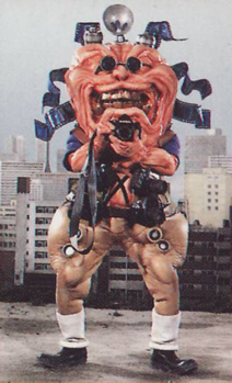 EPISODE 34 FF Munchori Bowzock's scandal photographer. He was sent by Zelmonda to see if Zonette was having an affair. At one point, he chase Radietta Fanbelt to Earth. He gave the Carrangers embarrassing photographs of themselves. He was beaten up by RadiaCar Robo, grew huge and then killed by VRV Robo. |