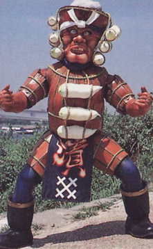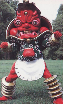 EPISODE 32 ZZ Gyuuri Bowzock's biggest kim chee (Korean fremented dish) lover. He piloted the RV Robo when it came under Bowzock control, with a row of explosives strapped to it. While VRV Robo and RV Robo battled, Red Racer sneaked inside the RV Robo, and fought Gyuuri on top of the waist-mounted explosives, halting RV Robo in the process. Red Racer managed to send the monster hurtling to the ground before shooting the bomb off and knocking it onto him. Gyuuri survived and enlarged himself only to be killed by VRV Robo. |